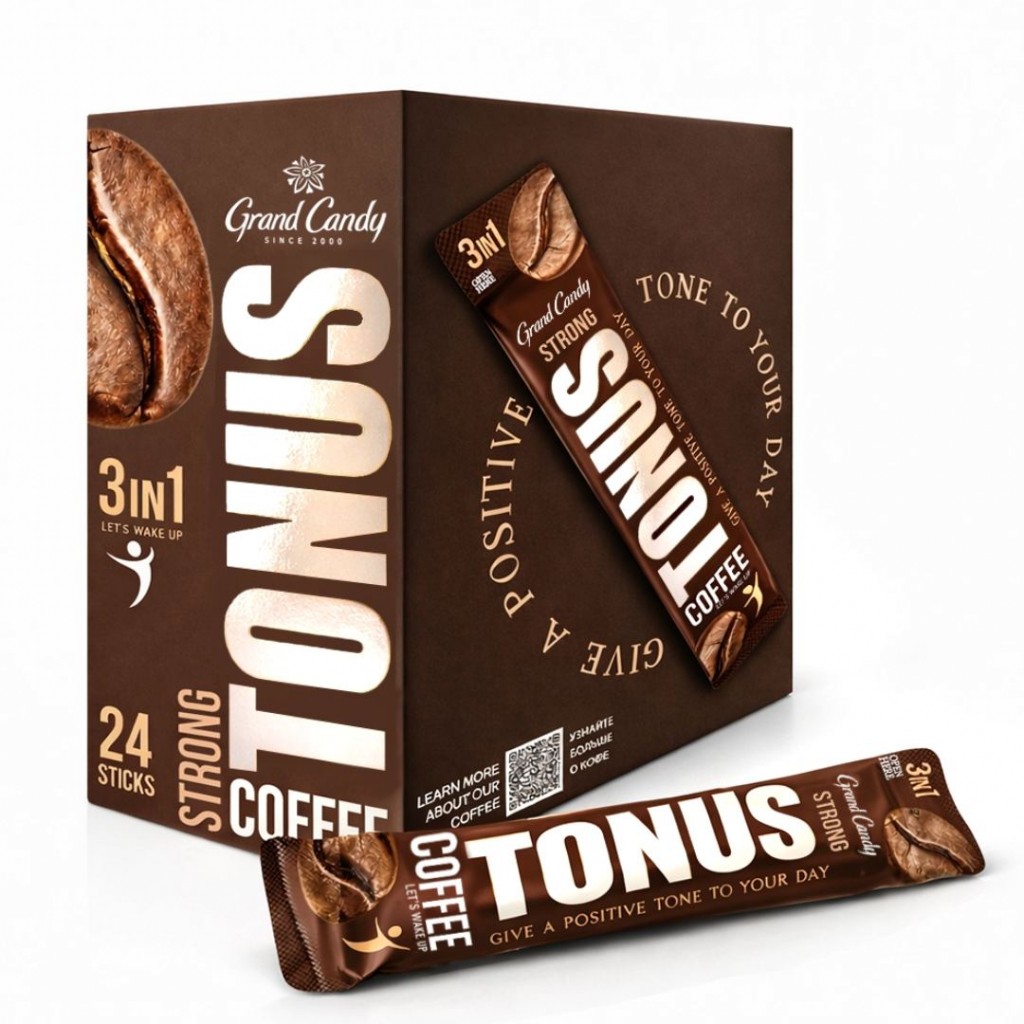 Նկարագիրը՝ 3-ը 1-ում լուծվող սուրճ` ռոբուստա տեսակի, շաքարով և բուսական սերուցքով: Քաշը՝ 16 գ